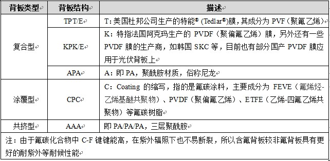 注:由于氟碳化合物中C-F鍵鍵能高,在紫外輻照下也不易斷裂,所以含氟背板較非氟背板具有更好的耐紫外等耐候性能